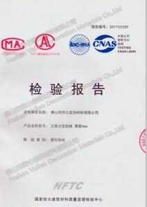 三维太空铝板 国标A2防火测试报告(点击下载) 三维太空铝板 美标A2防火测试报告(点击下载) 三维太空铝板 物理测试报告(点击下载) ROHS报告(点击下载) 防火板检测报告-1(点击下载) 防火板检测报告-2(点击下载) SGS 检测报告(点击下载) 防火板专利证书(点击下载) 4mm 防火板检测报告(点击下载) 4mm 外墙检测证书(点击下载) CE 认证(点击下载) 3mm 检测报告(点击下载) 4mm 检测报告(点击下载)